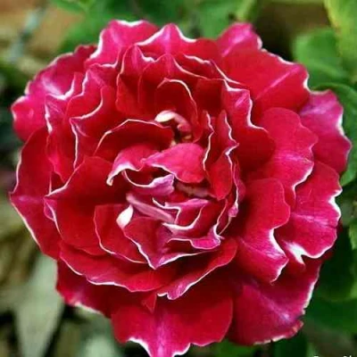 Роза ремонтантная Барон Жиро де Лен представляет собой старинный французский сорт, сохранивший свою неповторимую декоративность с конца XIX века. Этот уникальный сорт привлекает внимание изысканной двухцветной окраской: крупные чашевидные цветы насыщенного темно-красного, вишневого или темно-розового оттенка эффектно обрамлены тонкой контрастной белой каймой по краю каждого лепестка. Диаметр соцветий достигает 10 сантиметров, а их классическая форма и сильный приятный аромат создают атмосферу старинного сада. Прямостоячий раскидистый куст с длинными поникающими побегами и широкой темно-зеленой листвой формирует живописный объемный акцент высотой до 150 сантиметров, прекрасно вписываясь в пейзажные композиции.