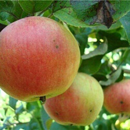 - Плоско-округлой формы, зеленовато-жёлтого, с выделяющимся тёмно-красным покровом и блеском, цвета. Мякоть плотная и сочная, кремового цвета;
