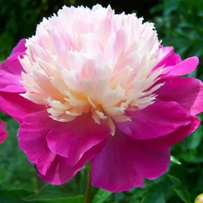 Цветок пиона Гей Пари обладает махрово-японской классификацией, которая предполагает многослойную структуру лепестков. Широкие лепестки темно-розового цвета обрамляют кремовые петалодии, создавая нежный и утонченный контраст. Соцветия компактные, диаметром около 15 см, что делает их идеальными для срезки и создания изящных букетов. Пьянящий аромат цветов дополнит визуальное удовольствие, придавая саду дополнительный шарм и привлекательность.